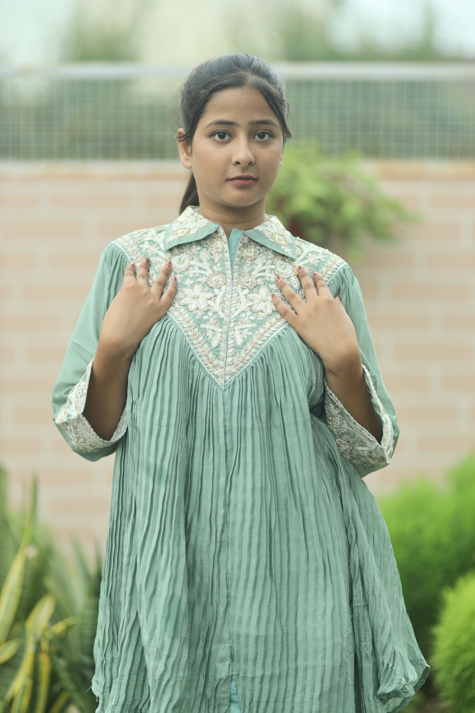 - Beautiful embroidered detailing on collar, yoke & sleeves
